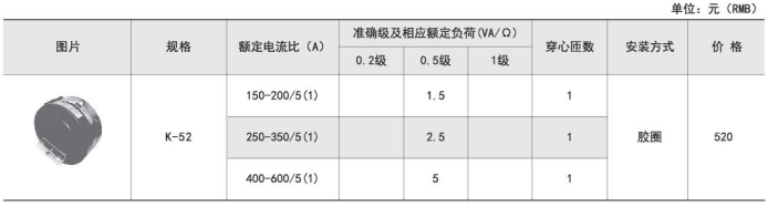 本产品适用频率为50-60Hz,为开合式产品,安装极为方便,内部有三个橡胶圈用于固定一次电缆,一次主绝缘由电缆保证,产品仅考核二次绕组的绝缘性能。
