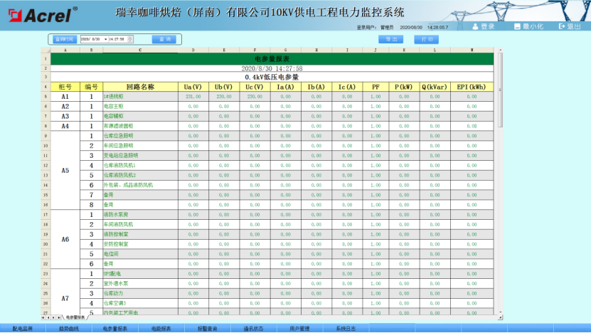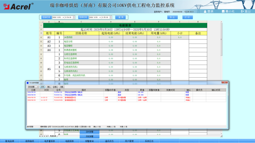 项目名称:瑞幸咖啡烘焙(屏南)有限公司10KV供电工程电力监控系统