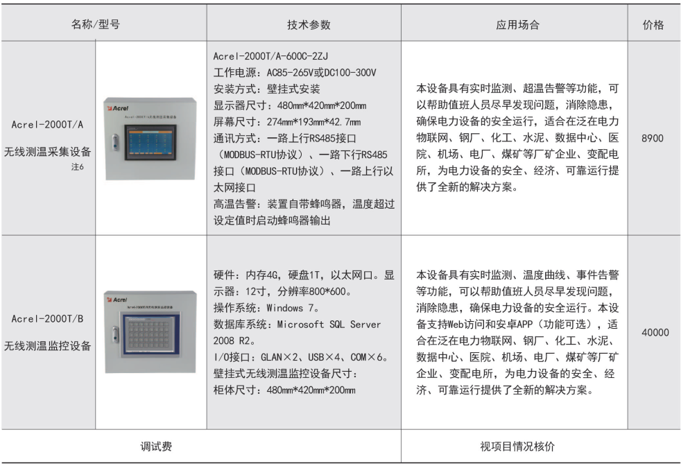 综上所述,确定型号为:无线测温集中触摸屏:AARTM-7062HT-4(HI),1台;无线测温传感器:ATE200,90个;无线测温收发器:ATC200,10个