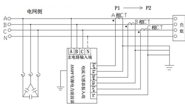 ANAPF系列有源电力滤波器通过电流互感器采集系统谐波电流,经控制器快速计算并提取各次谐波电流的含量,产生谐波电流指令,通过功率执行器件产生与谐波电流幅值相等方向相反的补偿电流,并注入电力系统中,从而抵消非线性负载所产生的谐波电流。