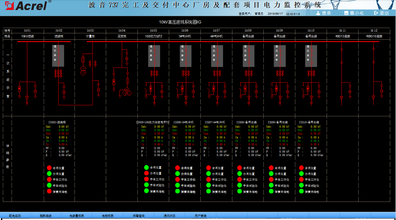 该项目包括1个仓库,2个生产车间,4个箱变,1个景观箱变总计8个单体。具有用电范围比较广且负荷比较大的特点,因此对用电的实际运行情况和能耗统计有极高的要求。