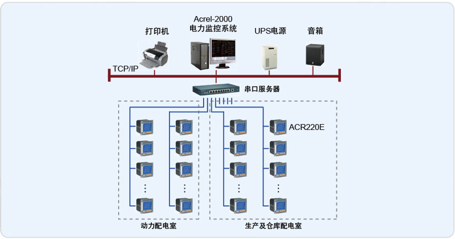 安科瑞电气股份有限公司于2013年3月承接了杭州赛诺菲民生健康药电力监控系统项目。整个系统采用Acrel-2000型电力监控系统,完成了杭州赛诺菲民生健康药业有限公司共有2个配电室(动力中心配电室、生产厂房及仓库配电室)电力监控。动力中心配电室内有2台进线柜、1台母联柜、4台补偿柜及24路普通馈线回路;生产及仓库配电室内有2台进线柜、1台母联柜、4台补偿柜及43路普通馈线回路,整个监控范围为81个回路的电参量监测,每个回路均采用安科瑞ACR220E型多功能仪表。网络仪表均采用RS485接口和MODBUS-RTU通讯协议,RS485采用屏蔽线传输,上传至监控主机。
