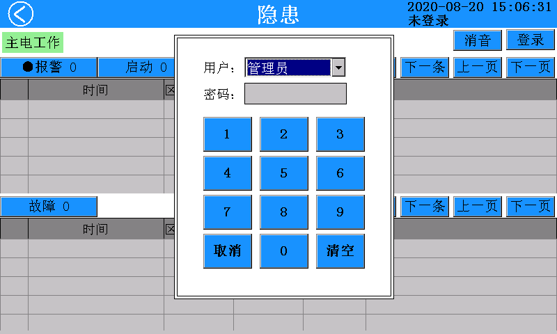 点击右上角的“登录”按钮,会弹出用户信息确认对话框,通过下拉菜单选择用户名,使用对应数字的按钮输入密码,如果密码正确则登陆成功