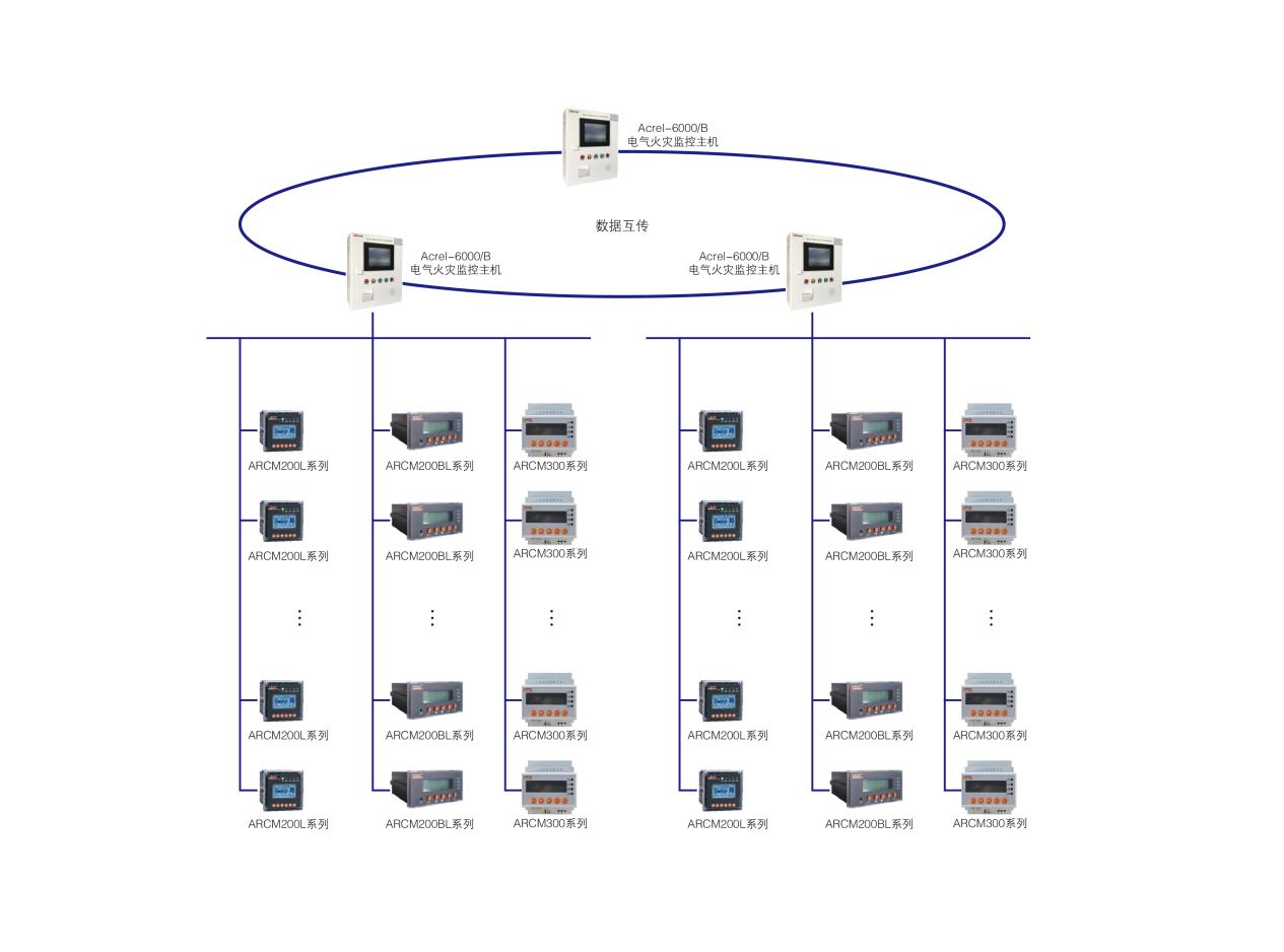电气火灾监控系统作为火灾自动报警系统的预警子系统,由电气火灾监控主机、电气火灾监控单元、剩余电流式电气火灾探测器以及测温式电气火灾探测器组成,通过现场总线构成一套完整的预防电气火灾的监控系统,数据可集成至商业中心消控室监控系统。