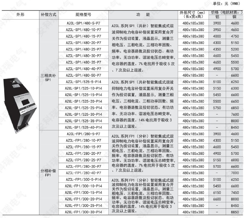 AZCL系列智能集成式谐波抑制电力电容补偿装置是应用于0.4kV、50Hz低压配电中用于节省能源、降低线损、提高功率因数和电能质量的新一代无功补偿设备。其中串接7%电抗器的产品使用于主要谐波为5次、7次及以上的电气环境,串接14%电抗器的产品使用于主要谐波为3次及以上的电气环境。