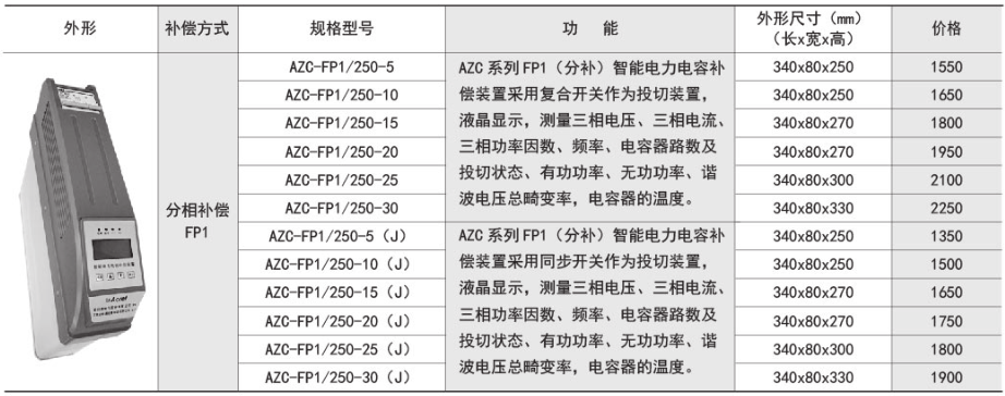 产品简介:AZC系列智能电力电容补偿装置由智能测控单元、投切开关、线路保护单元、低压电力电容器等构成,改变了传统无功补偿装置体积庞大和笨重的结构模式,是用于节省能源、降低线损、提高功率因数和电能质量的新一代无功补偿设备。