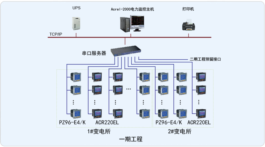天津运载火箭产业化基地是亚洲的航天产业基地,包括焊接、铸造、铆接、复合材料等约30个单体项目,天津基地已具备研制大火箭需要的全部功能,进入大火箭关键技术研制的突破阶段。二十万平方米的一期工程完工后,从部件加工到总装、试验,各项有关研制的功能都将具备。二期工程建设规模约三十万平方米,将根据国家航天产业发展需求陆续投入建设。本系统对一期工程中1#、2#变电所中设备进行监控、监测,计量装置选用安科瑞电力仪表ACR220EL、PZ96-E4/K用于对分布在厂区1#配电房及2#配电房低压回路进行监控。