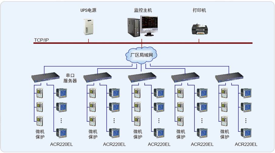系统主要实现中国建设银行股份有限公司云南分行本部地下B2变电所的0.4kV配电系统进行用电监测与电能管理;监测范围为改造变电所的T1、T2变压器的馈线柜、母联柜、电容补偿柜,变压器的相间温度、配电室和发电机房的温湿度,馈线柜和母联柜侧仪表进行远程实时监控和电能管理。该系统总计有29只仪表,分4条总线,都是直接通过屏蔽双绞线走管道拉至值班室后连接到串口服务器上,实现总线上仪表与监控主机的数据连通。