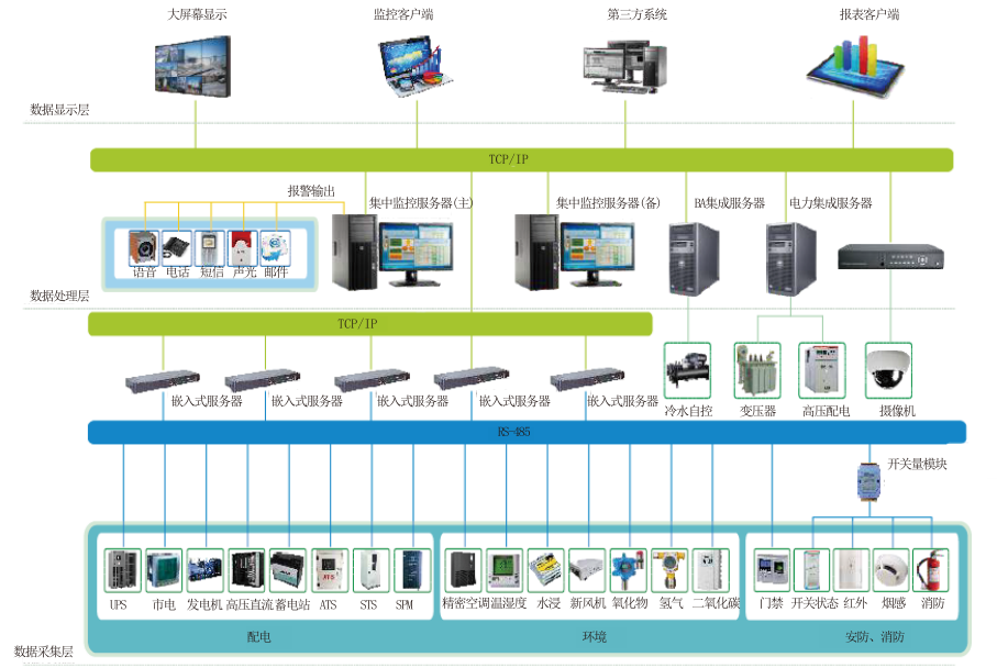 基础设施集中监控采用一体化监控采集系统(运行在嵌入式服务器上),系统主要功能有: