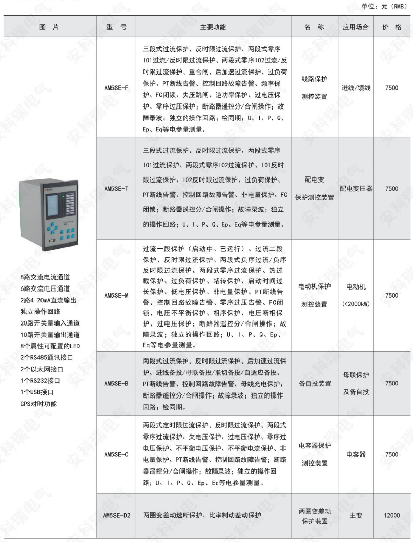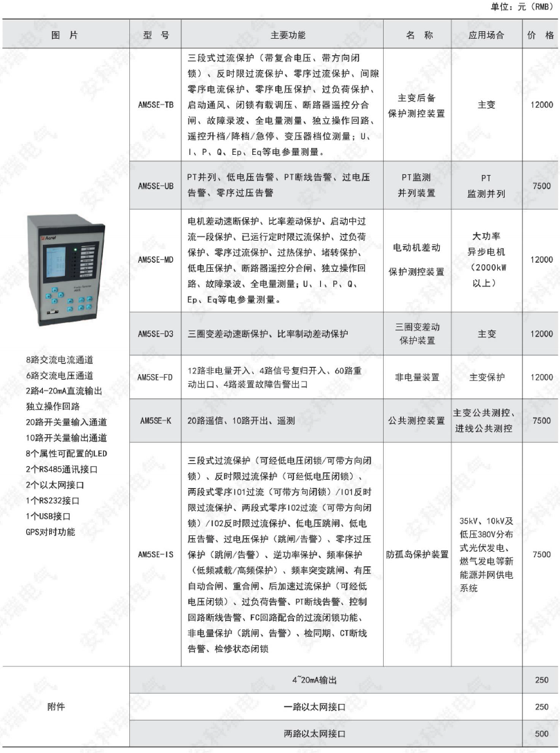 AM系列微机保护测控装置集保护、测量、控制于一体,适用于35kV及以下电压等级的用户终端变电站(所),可实现用户变电站的保护和测控。